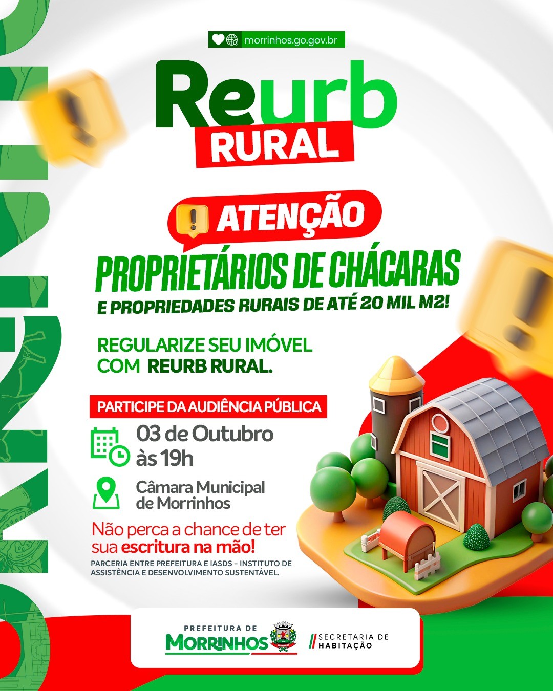Prefeitura de Morrinhos realiza audiência pública do Reurb Rural no dia 03 de outubro
